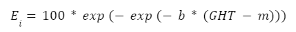 Dónde los valores de b y m dependen de la mala hierba seleccionada: